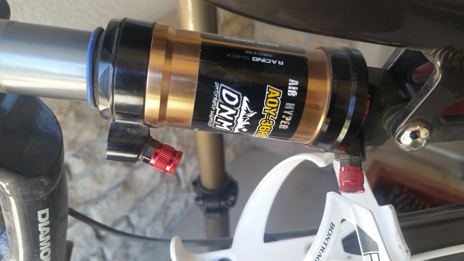 I dug around on Amazon and found an air shock replacement from Asia that was way less than the “American” counterparts that you usually think of when imagining the perfect rear air suspension on a mountain bike. I won’t name names. Like less than $80. The ratings for the DNM Rear Air Shock were good, so I measured my spring shock to verify the fit and ordered it.