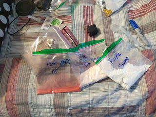 Here’s my suitcase almost packed, and a few other baggies I’ll be putting into my personal item carry on. I’ll be carrying on this suitcase too, as I don’t want to pay the exorbitant fees for checked luggage. Though I guess technically I have airline points that would earn me a freebie checked bag.